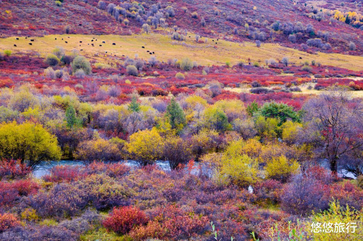 米亚罗是国内面积最大、景色最为壮观的红叶风景区之一,这里的红叶主要由枫树、槭树、桦树等树种组成。